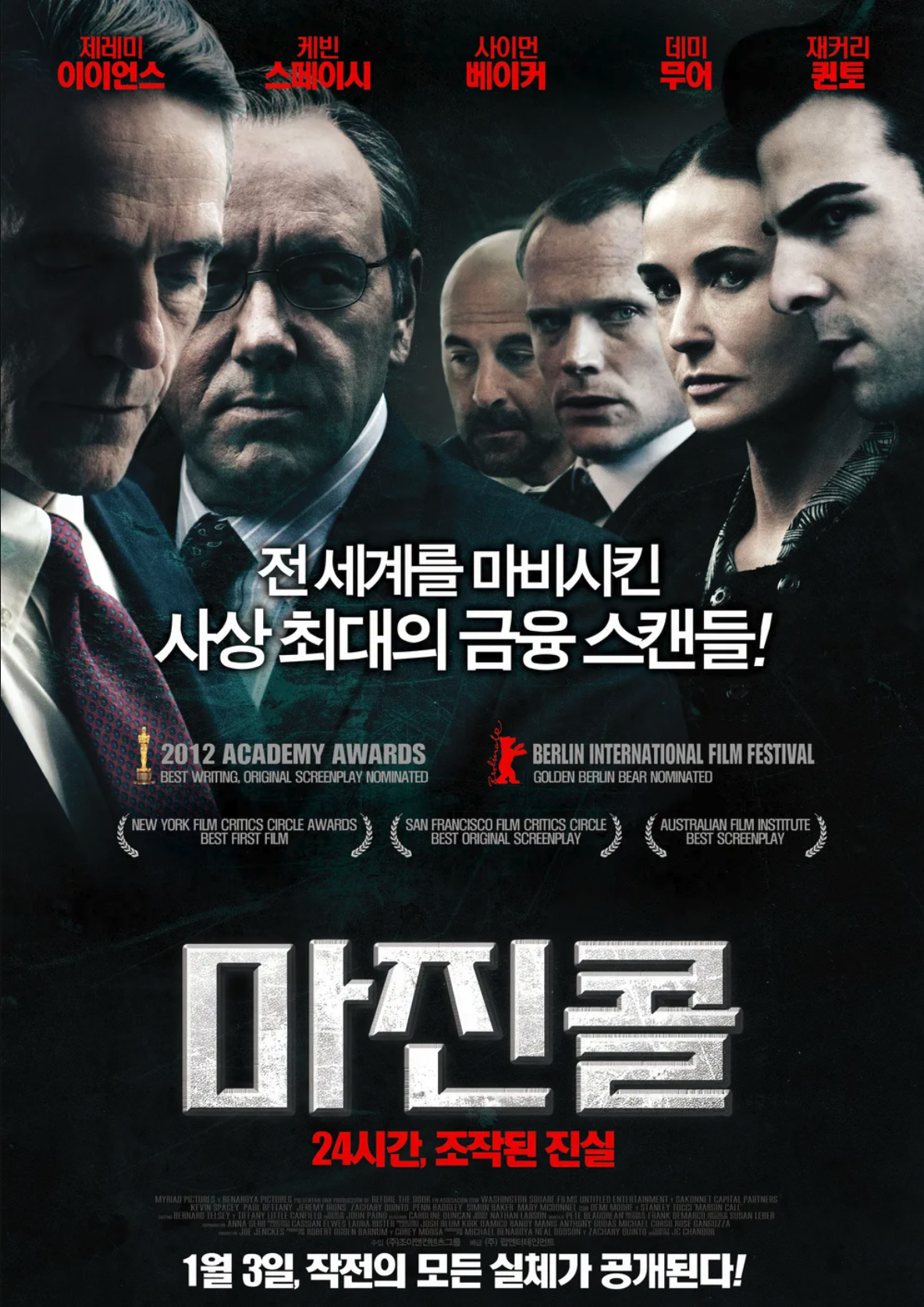 '마진콜'은 자극적인 영상미나 극적인 액션 없이 오직 밀도 높은 대사와 배우들의 표정만으로 압도적인 긴장감을 선사하는 수작이다. 일반적인 금융 영화들이 화려한 삶이나 복잡한 사기법에 집중하는 것과 달리, 이 영화는 '결정의 순간'에 집중한다. 2008년 서브프라임 모기지 사태를 배경으로 하고 있음에도 불구하고, 어려운 경제 용어를 남발하기보다는 인물 간의 심리적 대립과 권력 구조를 선명하게 부각한다. 특히 존 털드 회장이 피터 설리번에게 상황을 쉽게 설명하라고 지시하는 장면은, 대중이 이해하지 못하는 복잡한 수식 뒤에 숨은 추악한 본질을 꿰뚫는 명장면으로 꼽힌다.